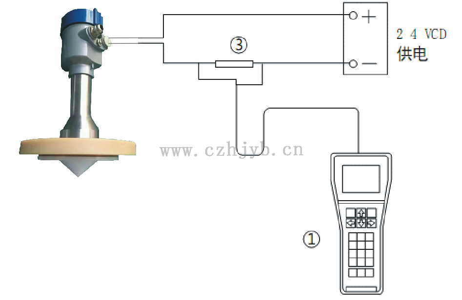 (4~20) mA/HART(兩線制) 供電電源和輸出電流信號(hào)共用一根兩芯屏蔽電纜線。具體供電電壓范圍參見技術(shù)數(shù)據(jù)。對(duì)于本安型須在供電電源與儀表之間加一個(gè)安全柵。