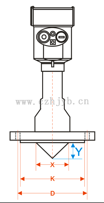 注:使用雷達(dá)物位計(jì)時(shí),務(wù)必保證最高料位不能進(jìn)入測量盲區(qū)(圖中D所示區(qū)域)。